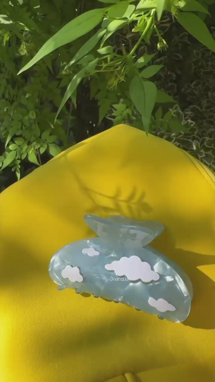 Add a splash of sky-blue charm to your hair with the Blue Cloud Claw Clip! Perfect for keeping your locks playfully in place, this clip combines a fun, airy design with a secure grip. Whether you're styling up or just taming a wild mane, it’s your cheerful little helper for effortless, breezy looks.