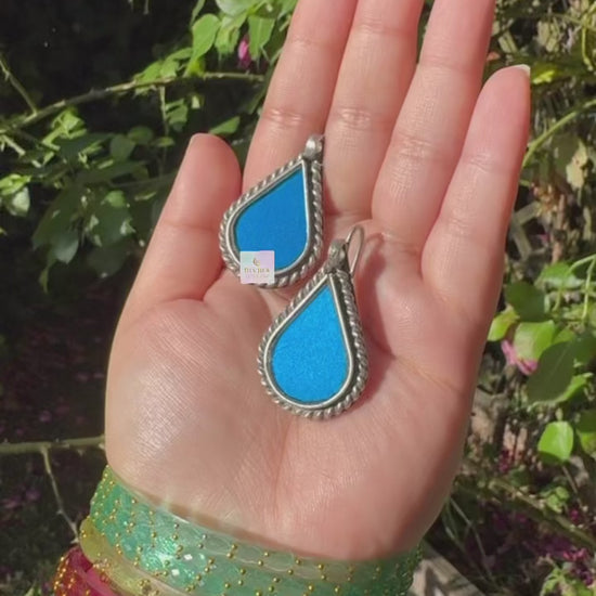 These lightweight blue hook earrings offer a versatile accessory suitable for daily wear. Their subtle design complements both Western and traditional outfits, providing comfort without compromising style. Ideal for adding a touch of color and elegance to any ensemble.
