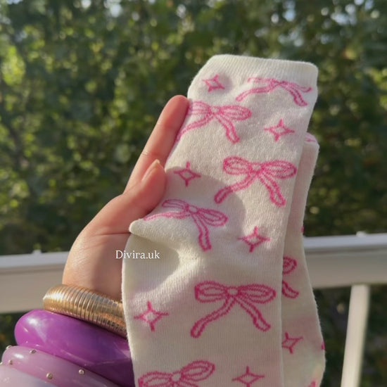 Step into cozy charm with these Bow Socks, ideal for keeping your toes toasty this fall. Their playful design adds a touch of fun to chilly days while providing warmth and comfort. Perfect for lounging or layering inside your boots, these socks bring a sweet twist to your autumn wardrobe.