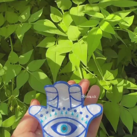 Elevate your hairstyle with this sophisticated Evil Eye claw clip, designed to combine elegance and protection. Crafted for secure hold and effortless style, it adds a subtle yet striking accent to any look while symbolizing warding off negative energy. Perfect for those who appreciate both fashion and meaning in their accessories.