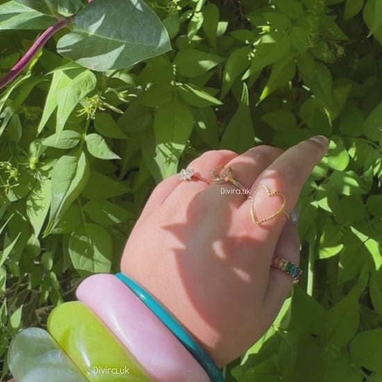 This elegant gold open heart ring features a delicate, adjustable design, ensuring a perfect fit without size concerns. Its timeless heart motif adds a subtle yet sophisticated touch to any look, making it an ideal accessory for everyday wear or special occasions. Crafted to combine comfort and style, this ring adapts seamlessly to your finger, offering both beauty and practicality.