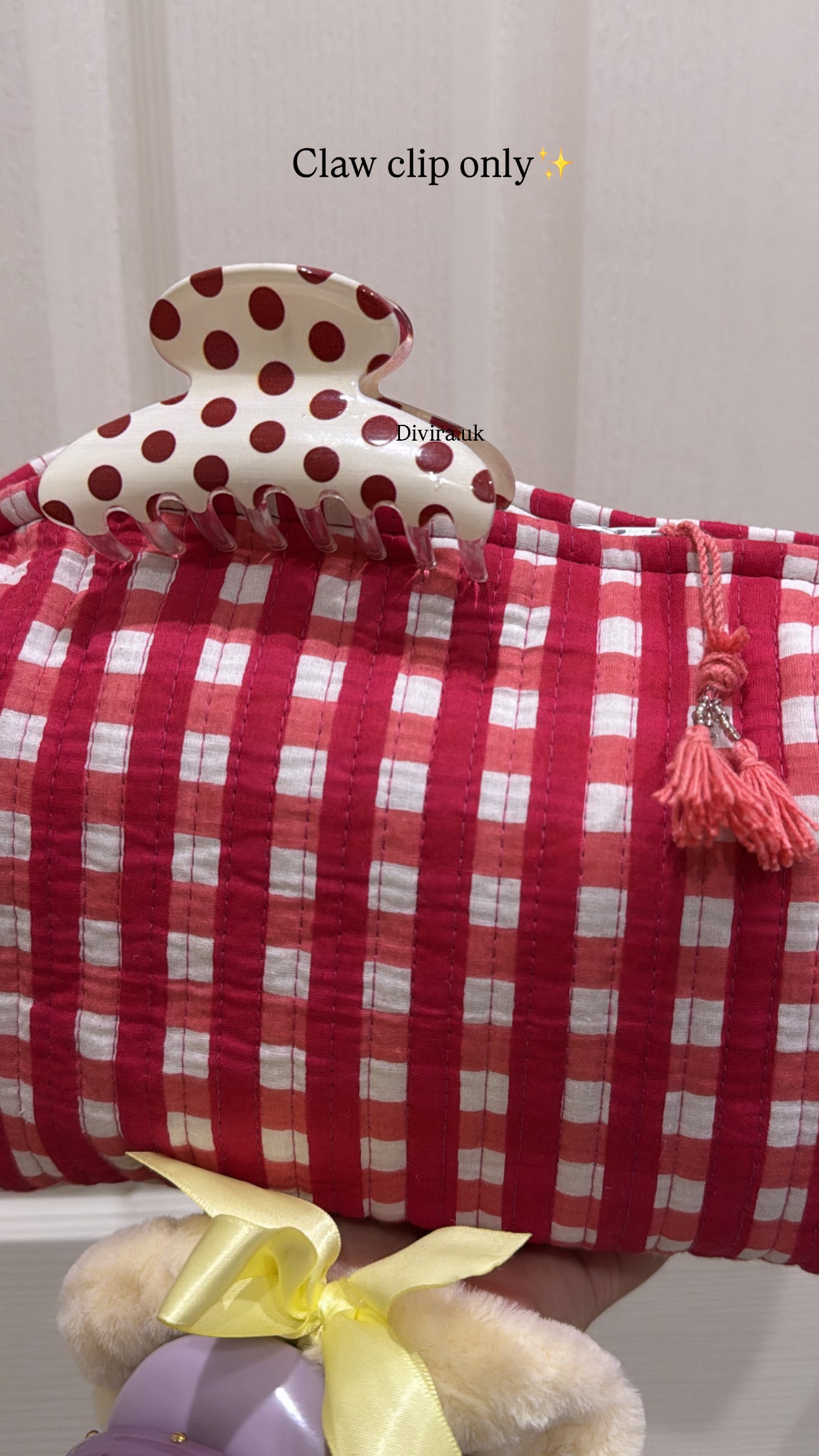 This is the final polka dot clip from our collection—a charming accessory that adds a playful touch to any look. With its classic polka dot pattern and practical clip design, it's perfect for keeping hair in place while bringing a bit of vintage-inspired style to your day. Don't miss out on this last remaining piece; once it's gone, it's gone for good.