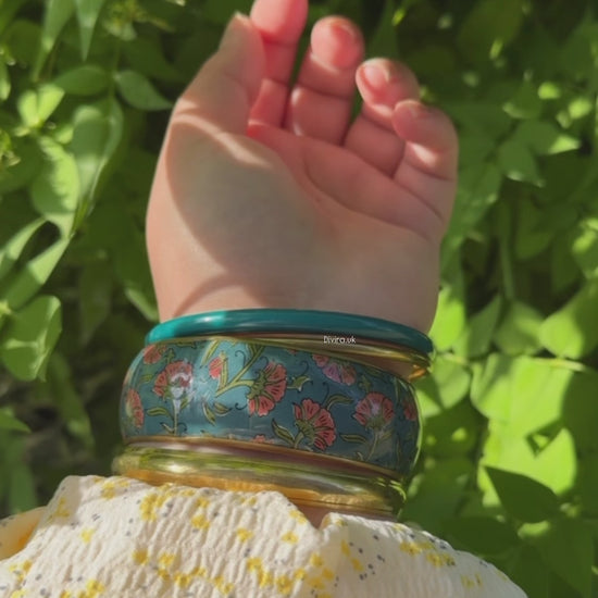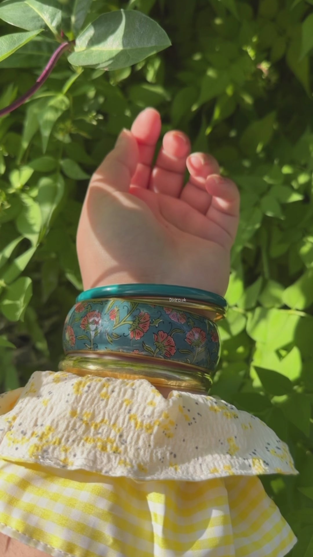 This elegant set includes four bangles—three delicate thin ones paired with a bold, thick kada—offering a beautiful blend of subtlety and statement. Perfect for adding a versatile touch to any outfit, these bangles can be worn together or separately to suit your style and occasion. Crafted to complement your everyday or special looks, they bring effortless charm and grace to your wrist.