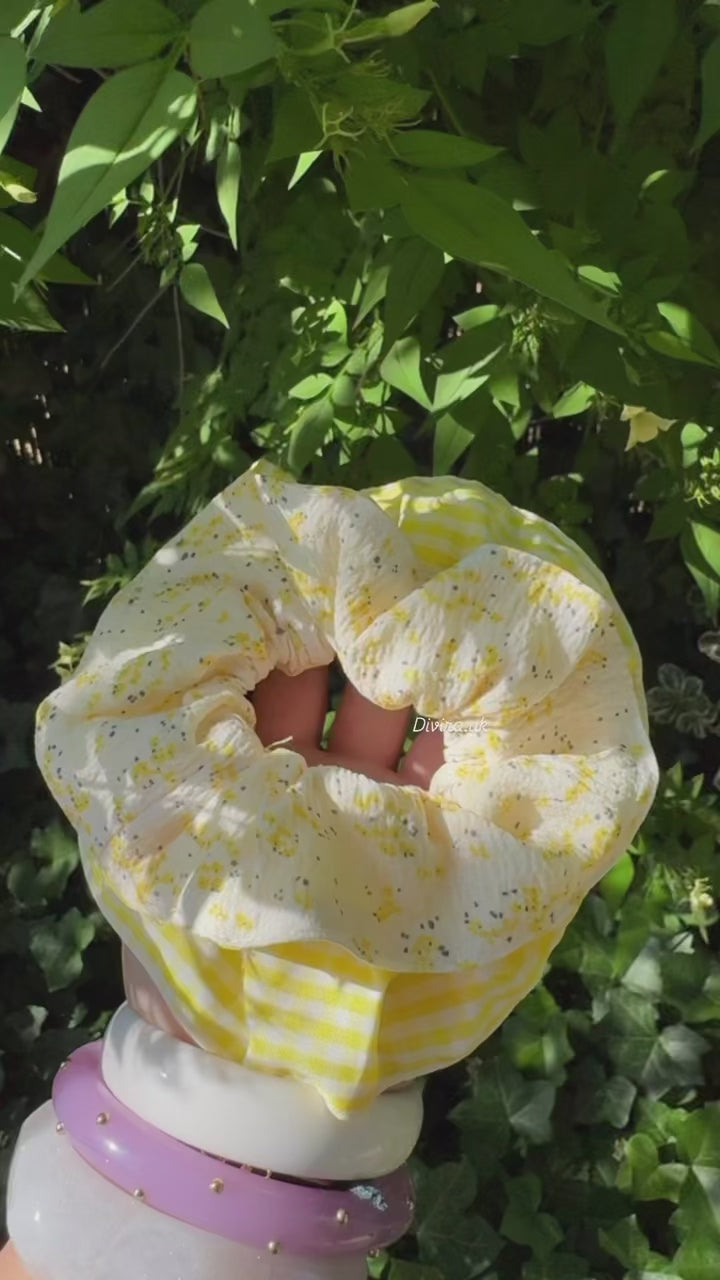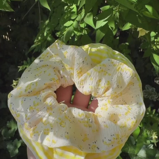 Add a sunny pop of color to your look with this large yellow scrunchie! Perfectly playful and roomy, it holds your hair comfortably for any occasion—whether you're out with friends or just lounging at home. Brighten your day and your hairstyle with this cheerful accessory!